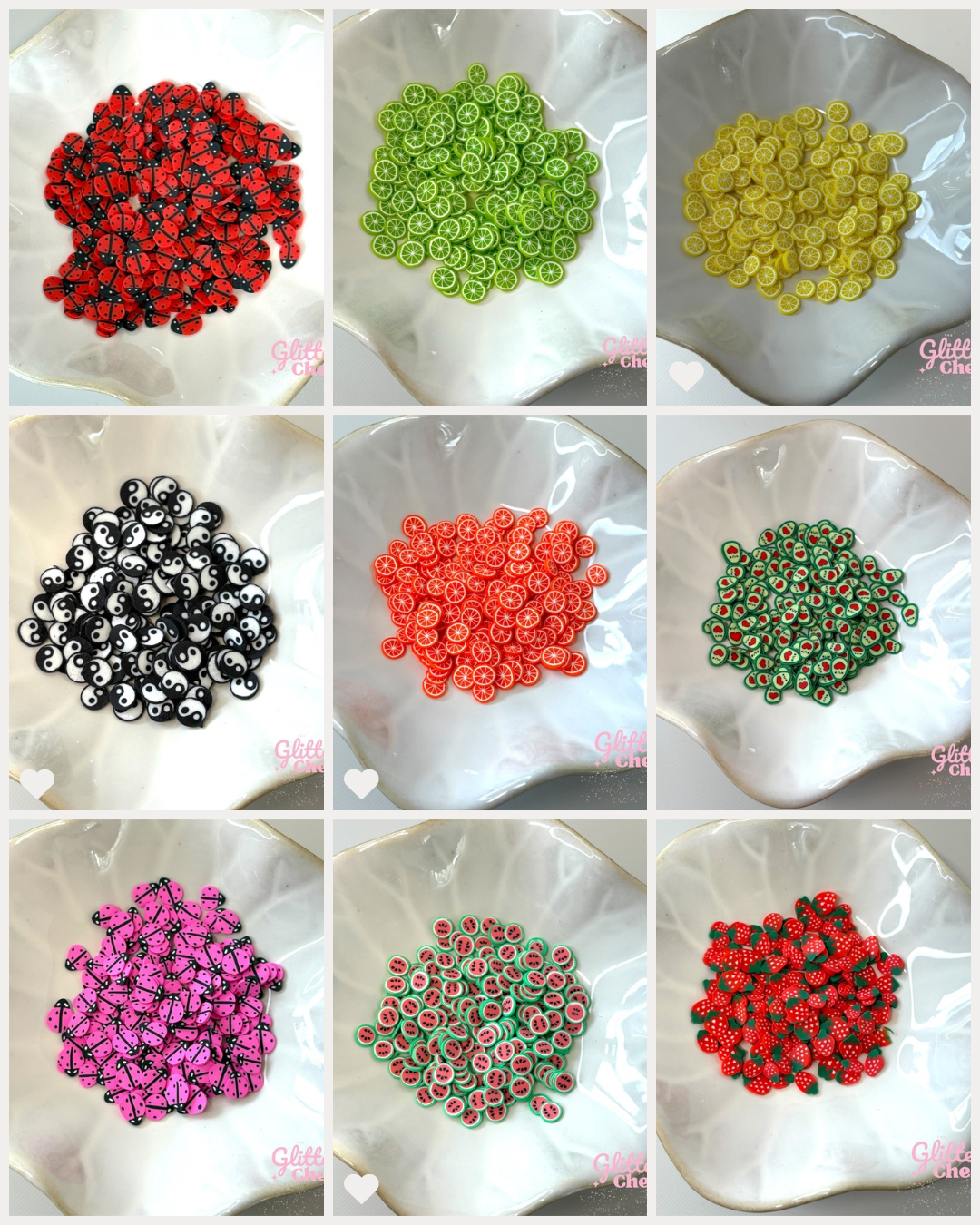 These are the polymer clay slices our customers can’t get enough of! From cute fruit designs to fun shapes like ladybugs and yin yangs, these bestsellers are perfect for slime, nail art, resin crafts, shaker charms, and more.